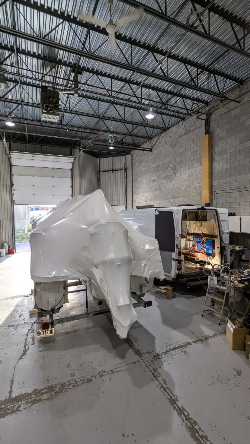 What is a shrink ? It's an ultra-resistant plastic film that is heated so that it perfectly fits the shape of your pontoon, boat, or even your personal watercraft. Basically, it seals your boat for the winter, protecting it from wind, snow, and even curious little critters that might want to make it their home.