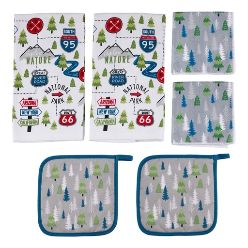 Road Sign Kitchen Towel & Potholder Set - 6 Pieces
