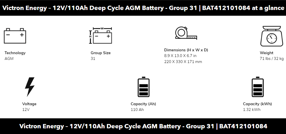 Victron Energy – 12V/110Ah Deep Cycle AGM Battery - Group 31