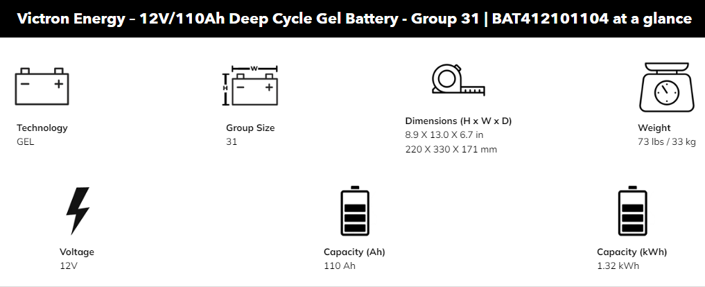 Victron Energy 12V 110Ah Deep Cycle Gel Battery – Group 31