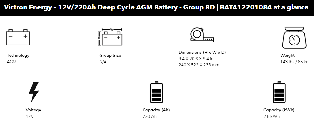 Victron Energy 12V 220Ah Deep Cycle AGM Battery – Group 8D