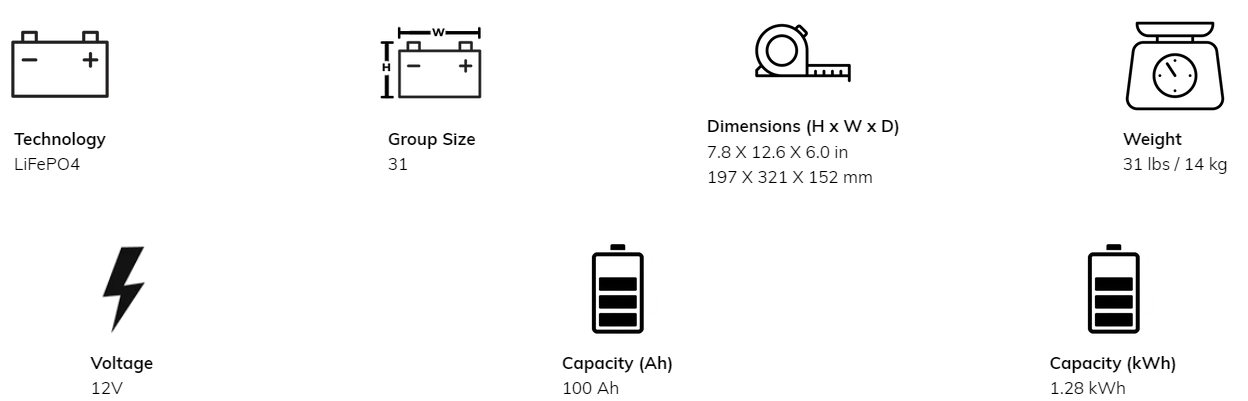 Victron Energy – 12V/100Ah Smart LiFePO4 Battery (Group 31) | BAT512110610