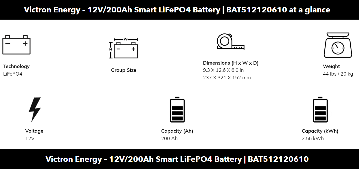 Victron Energy – 12V/200Ah Smart LiFePO4 Battery