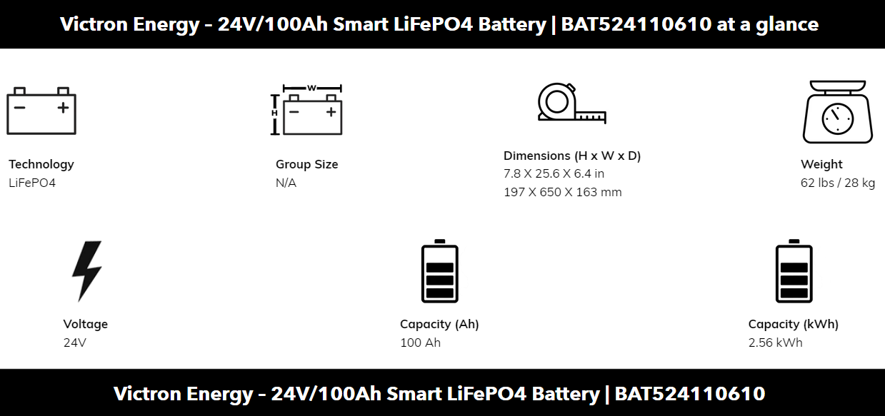 Victron Energy Smart LiFePO4 Battery – 24V/100Ah