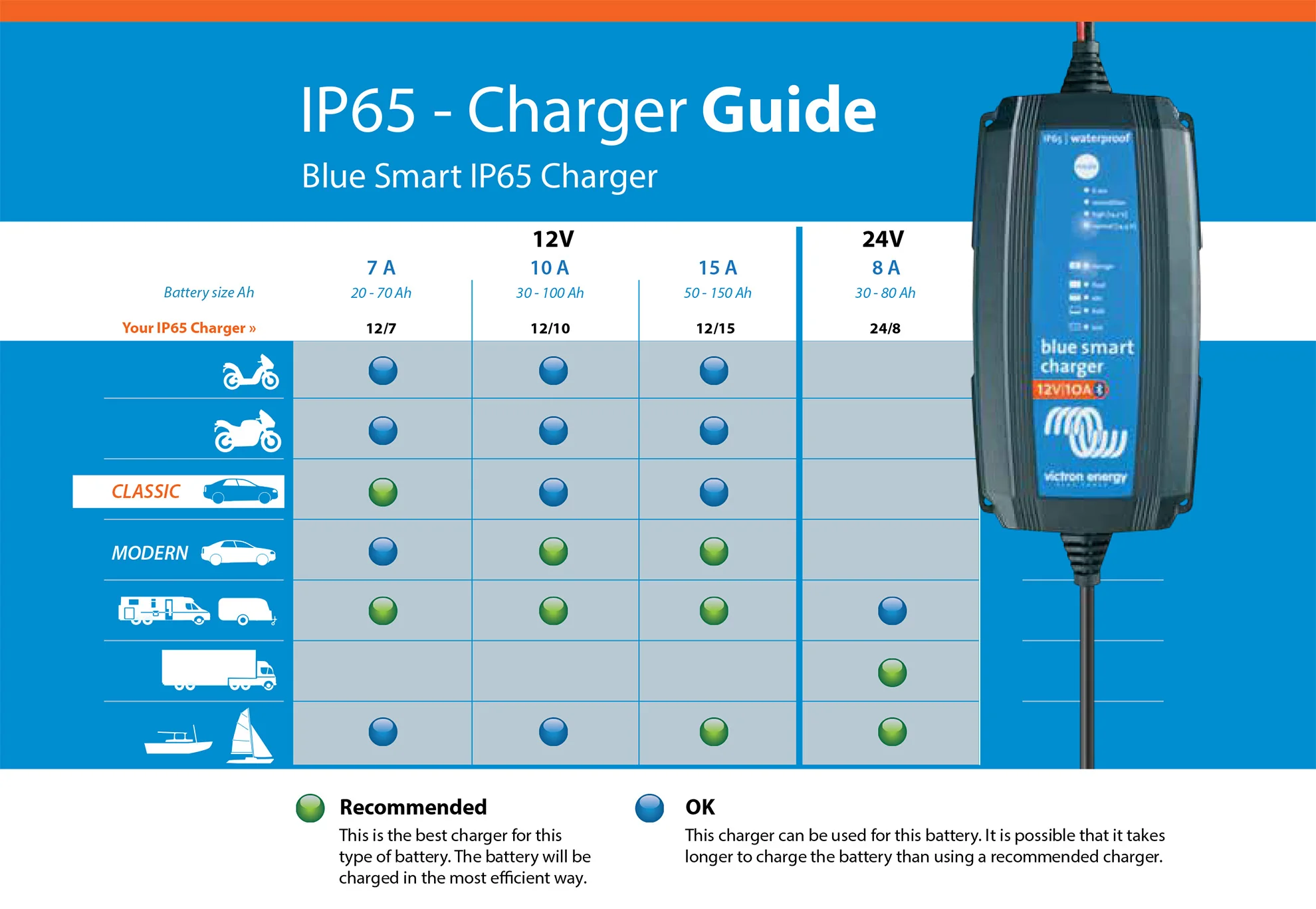 Ensure efficient and safe charging for your 12V batteries with the Victron Blue Smart IP65 12V/15A Charger. Engineered for durability and smart performance, this charger is ideal for automotive, marine, and off-grid applications. With Bluetooth connectivity, you can monitor and configure the charger remotely using the VictronConnect app.