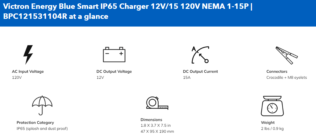 Victron Energy Blue Smart IP65 Charger 12V/15A – 120V