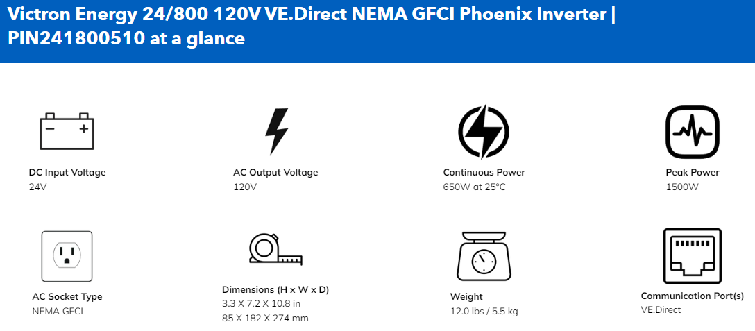 Victron Energy 24/800 120V VE.Direct NEMA GFCI Phoenix Inverter
