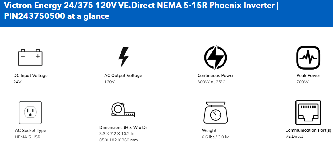 Victron Energy 24/375 120V VE.Direct NEMA 5-15R Phoenix Inverter