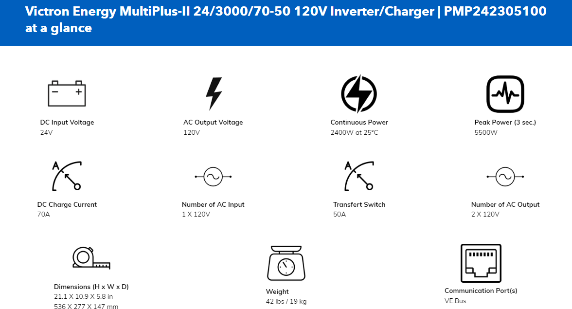 Victron Energy MultiPlus-II 24/3000/70-50 120V Inverter/Charger