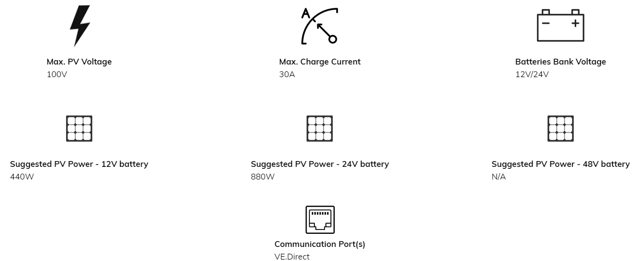 Victron Energy SmartSolar MPPT 100/30 Solar Charge Controller | SCC110030210