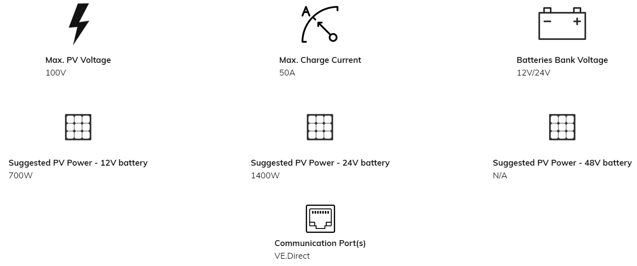 Victron Energy SmartSolar MPPT 100/50 Solar Charge Controller | SCC110050210